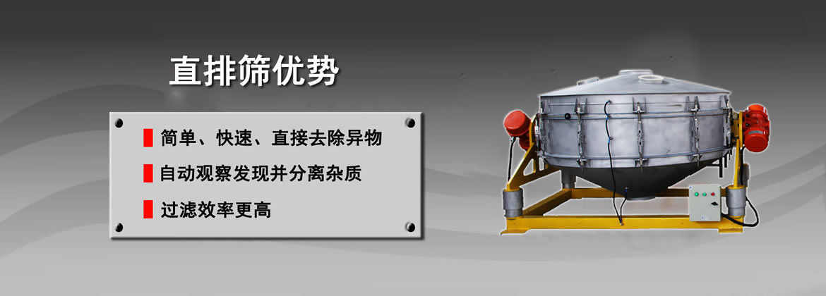 直排筛是在旋振筛的基础上设计的一种筛分过滤筛,通过两台相同大小的振动电机对称的安装在筛体的两侧,和旋振筛一样,电机的上下两端都安装有偏心重锤,电机在转动时产生三次元运动作用于筛面从而达成对物料的筛分作业,同时出料口为直排式设计来提高排料的速度。