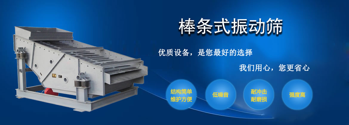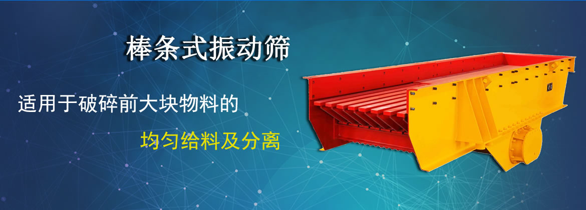 国盛牌棒条式振动筛简称棒条筛,采用盲板加棒条形式的给料面,样式分为:激振器式、振动电机式、吊挂式三种,适用于破碎机前大块物料的均匀筛分,特别适用于黑色或有色金属矿石、建筑石料粗碎或中碎前的给料用。