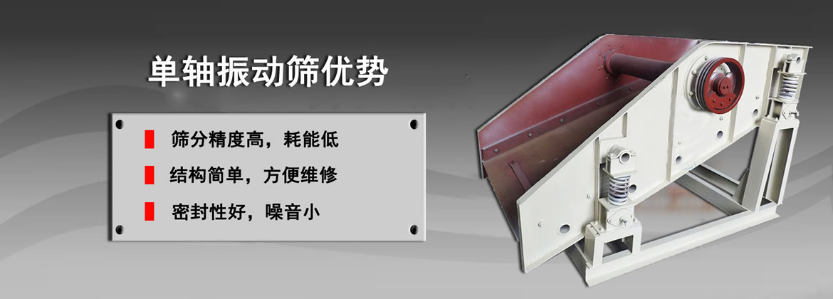单轴振动筛有一个十分牢靠的筛箱,因为其结构是焊接及铆接而成,在振动器的主轴上不仅中间位置有偏心轴,而且主轴两头也有能够调节的偏心轮。在筛分时,电动机经由三角带作用于振动器,传动轴使偏心轴及偏心轮产生惯性力,这种惯性力会令筛箱作近似的圆形的运动,使物料得到了较佳的筛分效果。