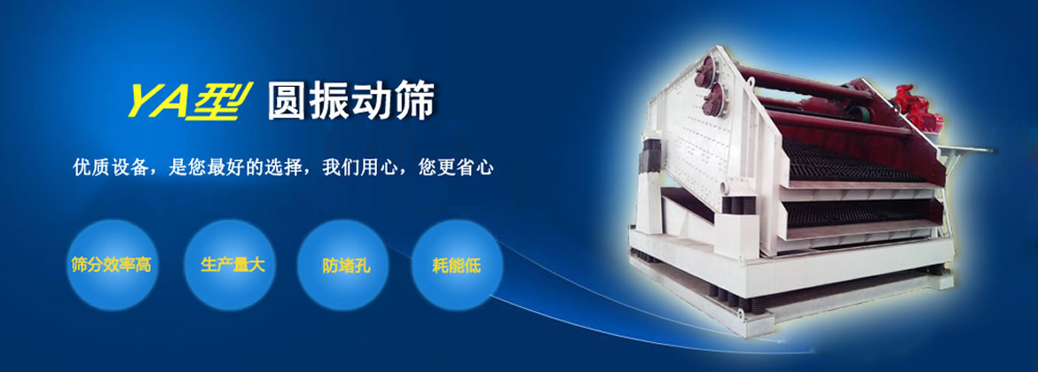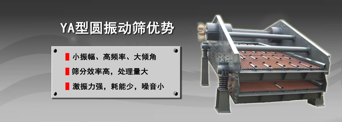 YA型圆振筛的筛箱运动轨迹为圆形或椭圆形圆振动筛采用惯性激振器产生振动其振动源一般为电动机带动激振器.圆振动筛为单轴振动器固定在筛箱上的主轴由振动电机带动告速旋转安装在主轴上的偏心体随之转动产生离心惯性力使可以自由振动的筛箱产生近似圆形轨迹的振动。