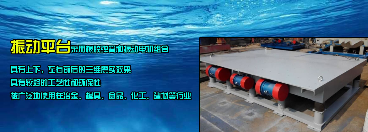 振动平台采用橡胶弹簧和振动电机组合,具有上下,左右前后的三维震实效果,具有较好的工艺性和环保性。被广泛地使用在冶金、模具、食品、化工、建材等行业,在生产流程中用于把颗粒、粉状物料从散装到块状、型状等形式的转变。我公司提供的振动平台详细使用说明书,简单易学即使没有操作过,也可以轻松操作。该设备还用于实验室,现场工地做试件成型和预制构件震实各种板柱、梁等混凝土构件振实成型。