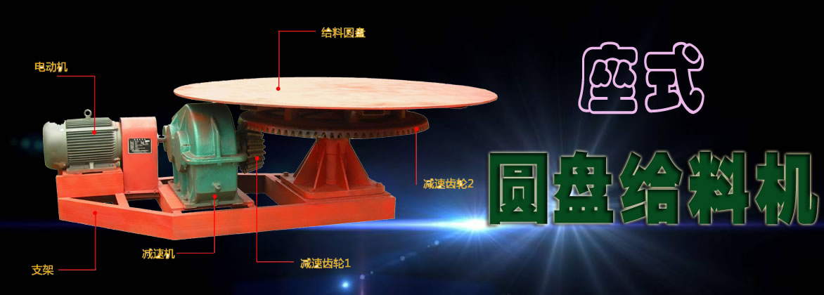 圆盘给料机的电动机通过皮带的转动再带动减速机运行,使得圆盘匀速的绕一侧方向旋转,物料进入圆盘上的衬板之后,就会跟着圆盘一起转动,旋转到一定位置,物料就会被衬板上的刮刀刮出去,进入下一道工序,达到给料的目的。