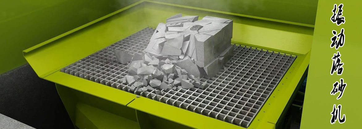 振动落砂机利用了振动激振的惯性力和弹性力的合成,安装的振动电机反向同步运行,水平分力保持相互平衡,垂直方向上的合力使得落砂机隔振体,以一定的加速度或工作质量相同的频率作正弦振动,带物料的模具被放在落砂栅床上,形成有效的振动冲击对铸件落砂破碎的,并且会与栅床之间留有一定的间隙,然后通过振动电机偏心块的旋转,带动栅床上下左右振动,同时就会不停的撞击模具底面,使模具上的物料充分与模具分离,以完成物料落砂过程。当空载时,设备的振动噪音低80dB,而负载时,振动幅度就会相对稳定,冲击噪音低,所以说是一种环保型的振动落砂机。
